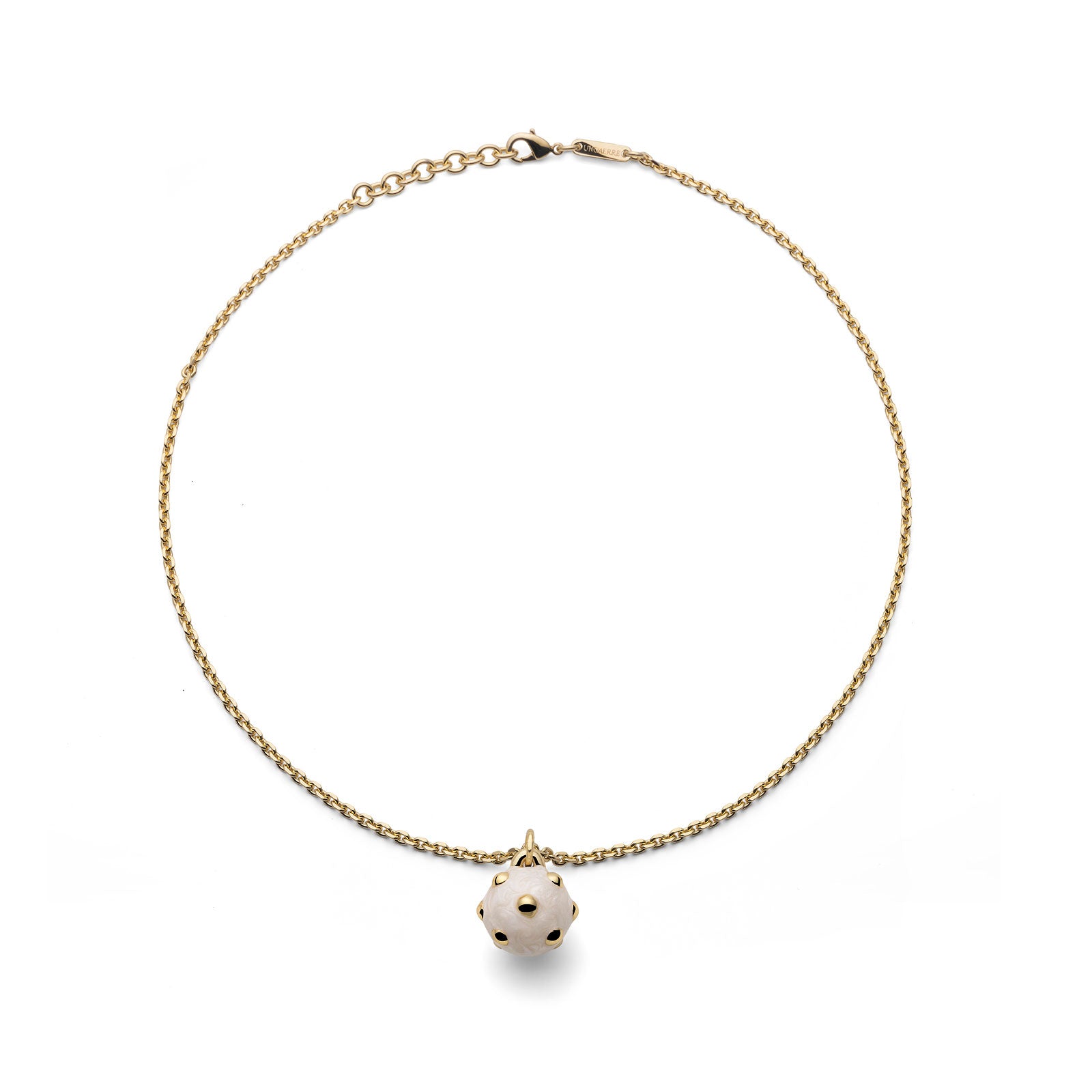 Collana corta con ciondolo a forma di mina e smalto bianco madreperlato, 42,00 cm. Unoaerre rivisita un grande classico del gioiello prendendo spunto direttamente dagli archivi storici anni '50. Tornano così le iconiche Mine, nate nel secondo dopoguerra con l'intento di esorcizzare le paure e le sofferenze passate. Simbolo di rinascita e nuova prosperità, furono indossate anche da Sophia Loren nell'intramontabile film "Ieri, Oggi e Domani". Scopri tutta la collezione e divertiti a creare il tuo mix unico con i gioielli coordinati.